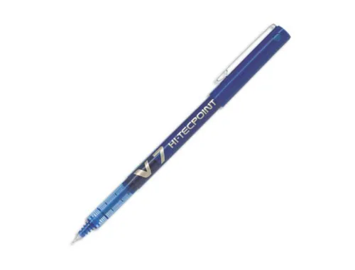 Stylo pilot v7 écriture moyenne 0.7mm clip métal encre liquide niveau visible pointe indéformable trait 0.5 mm col bleu