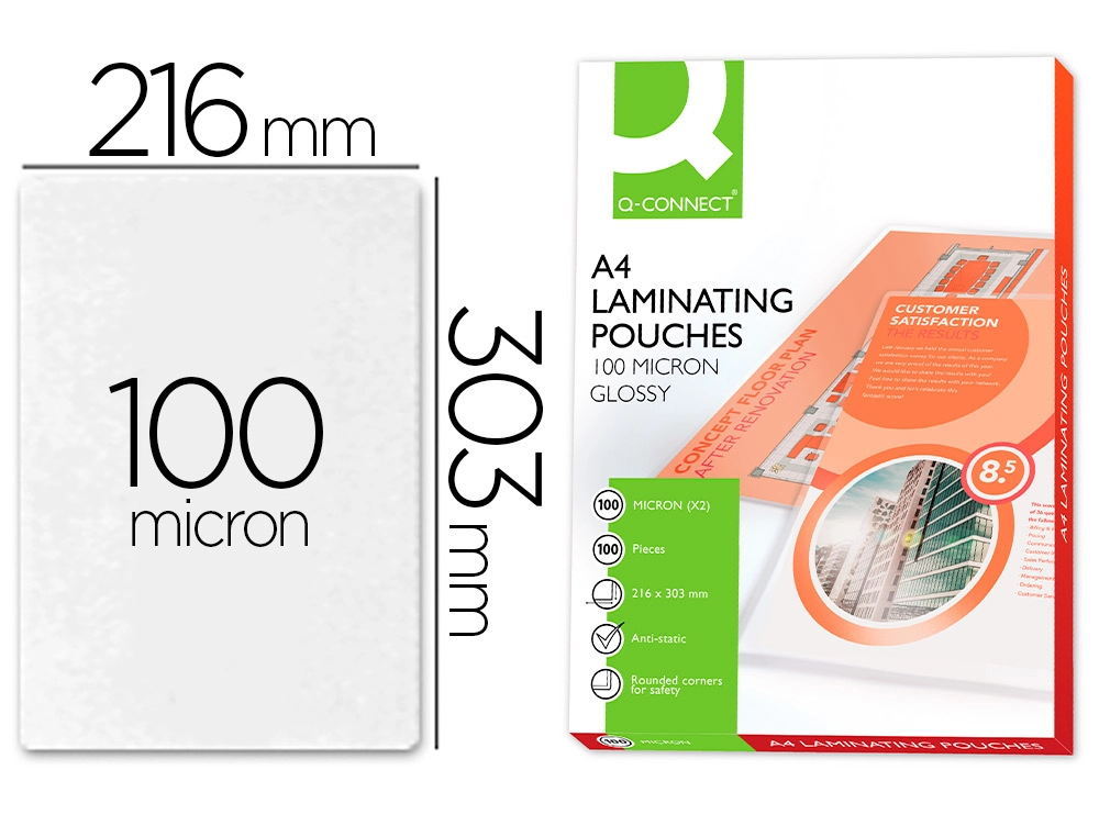 Les pochettes de plastification Q-Connect protègent vos documents de l’usure, des éclaboussures, des salissures et des déchirures. Une plastification à chaud offre une meilleure adhésion et une plus grande durabilité par rapport aux méthodes de plastification à froid. La finition brillante améliore la clarté des documents et leur donne un aspect professionnel. Convient pour une large gamme de documents, y compris les documents imprimés en couleur et en noir et blanc.